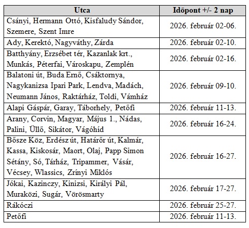 Értesítjük Önöket, hogy 2026. február 1-28. között a vízmérők leolvasását az alábbi felhasználási helyeken végezzük: