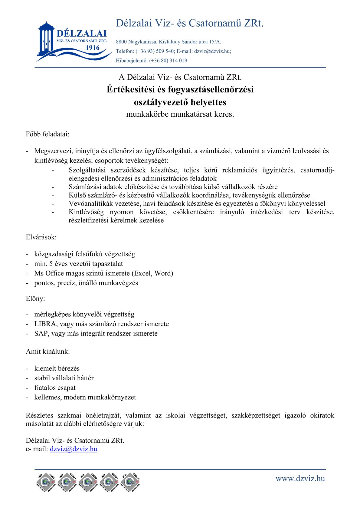 2025-12-03 - Értékesítési és fogyasztásellenőrzési osztályvezető helyettes