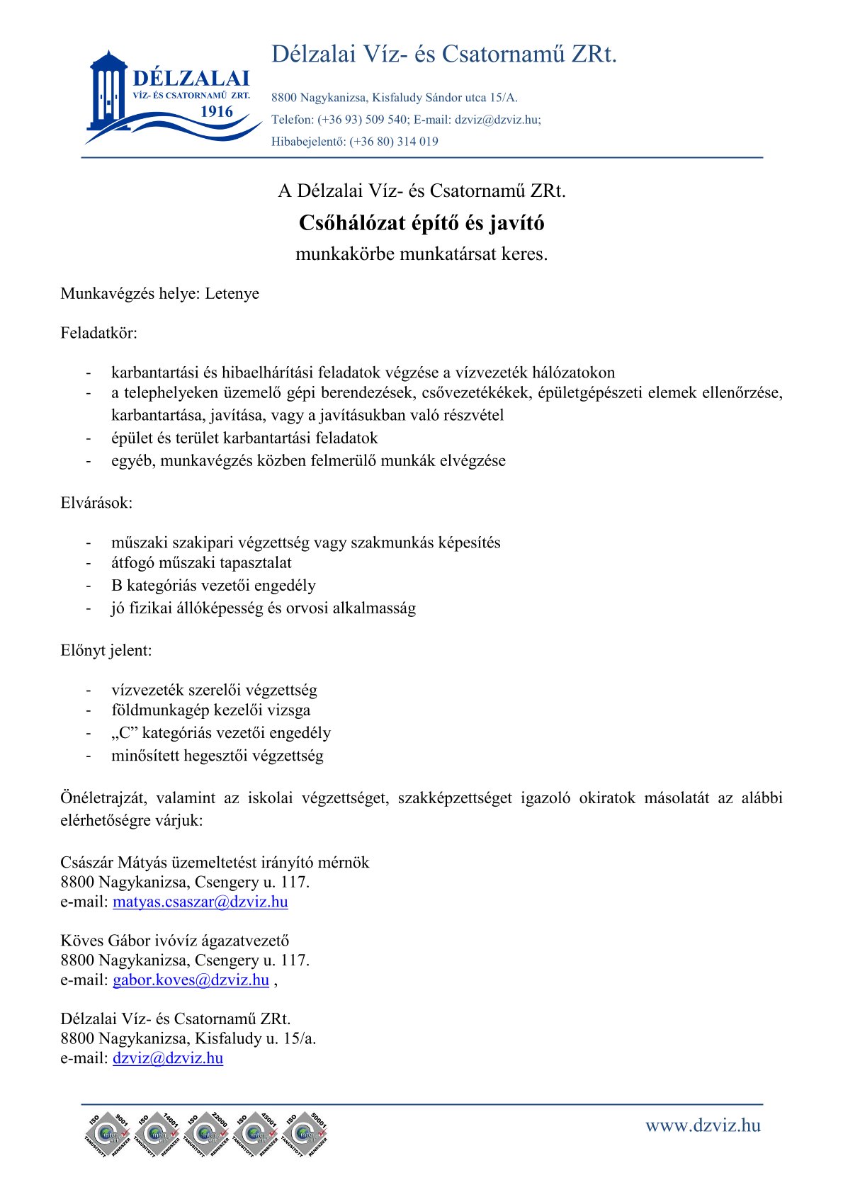 2025-11-14 - Csatornajavító karbantartó - Nagykanizsa